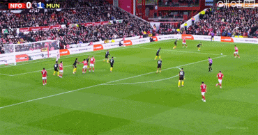 布鲁诺·费尔南德斯主罚,卡塞米罗把握住这次本应不存在的定位球,跃起头球冲顶入网,曼联1-0诺丁汉森林。